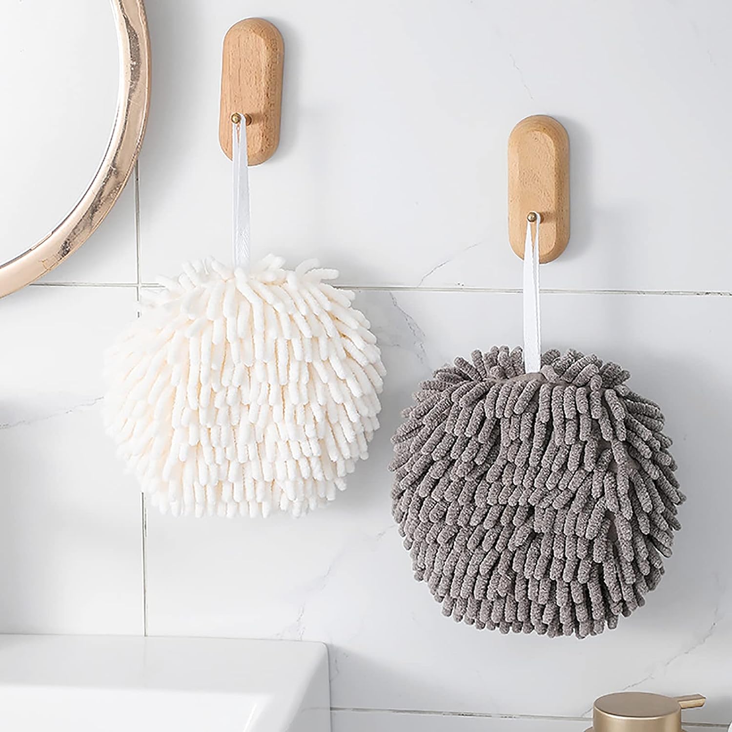 - 【BALL SHAPED TOWEL】: Hand cleaning towel with ball shaped design, just the right shape to fit your palms and also allow an easy and convenient contact with your hands to wick away moisture.